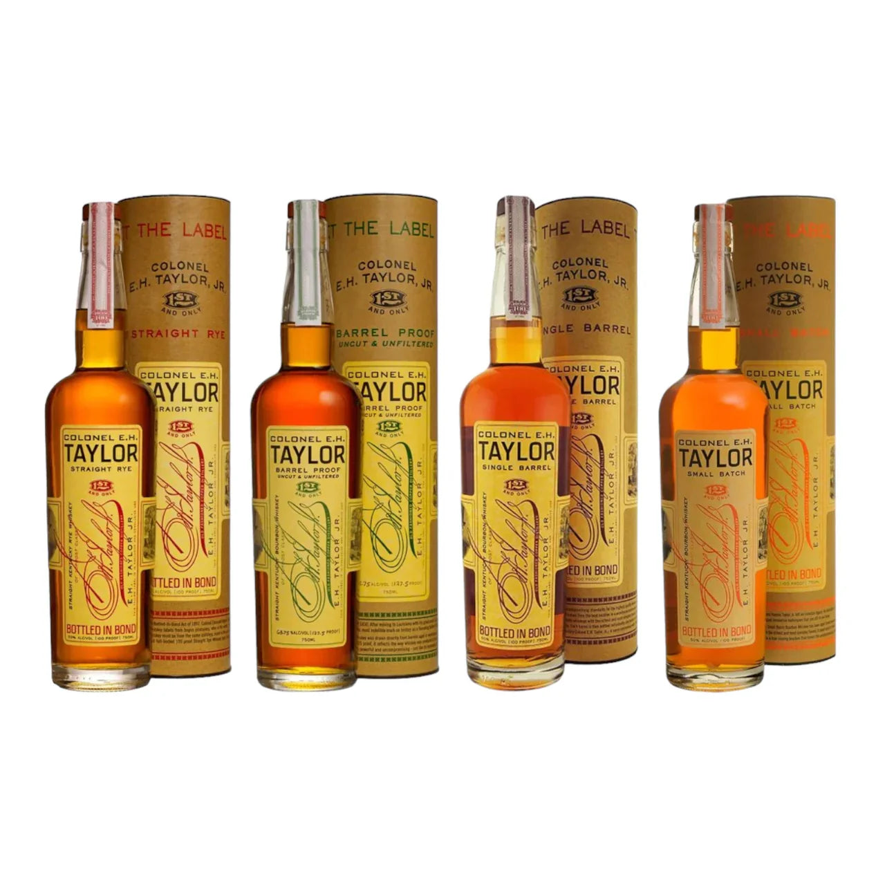 Colonel E.H. Taylor Barrel Proof, Single Barrel, Small Batch & Straight Rye Whiskey Bundle 4-Pack