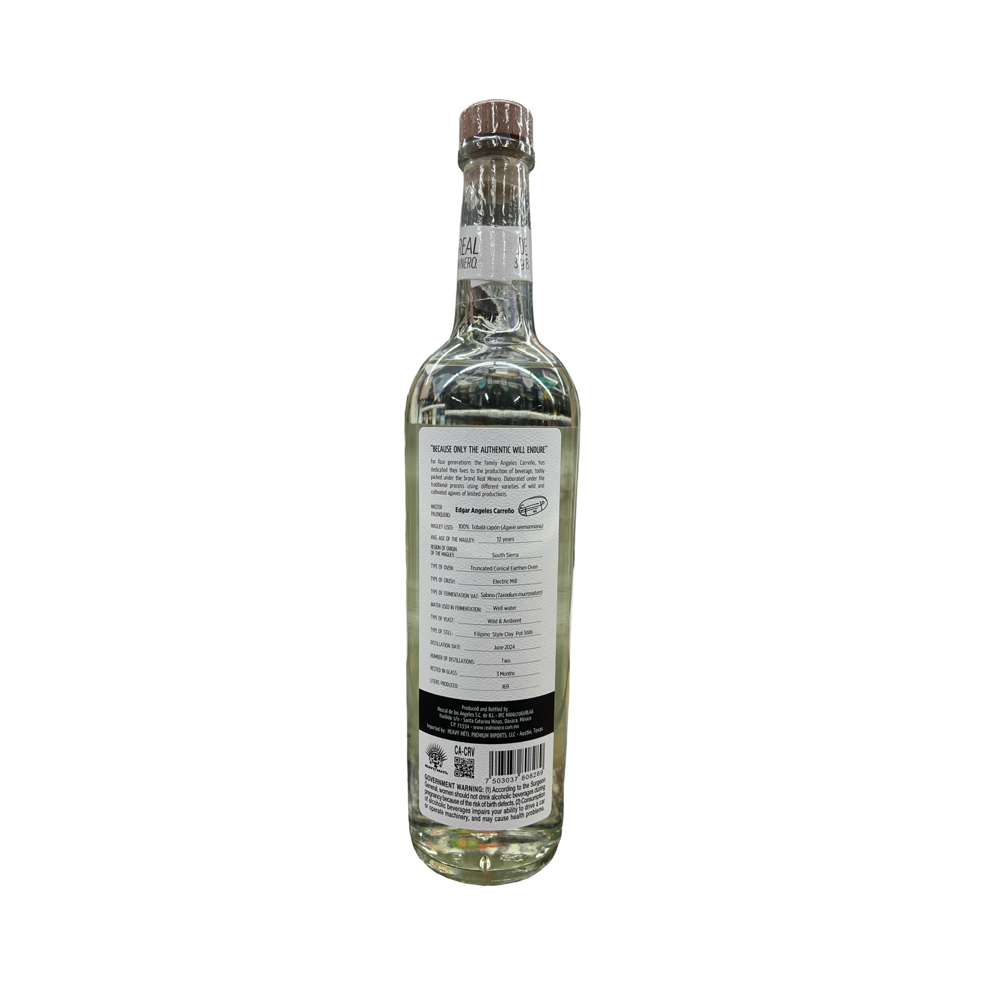 Real Minero Tobala Capon Traditional Still Strength Mezcal 750ml